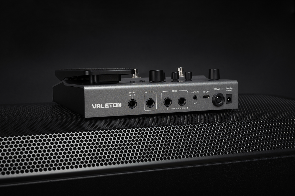 Built-in expression pedal rocker. Great for wah and volume swells right out of the box.