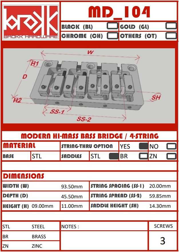 Brokk Modern Hi-Mass 4 String Bass Bridge - Matte Black