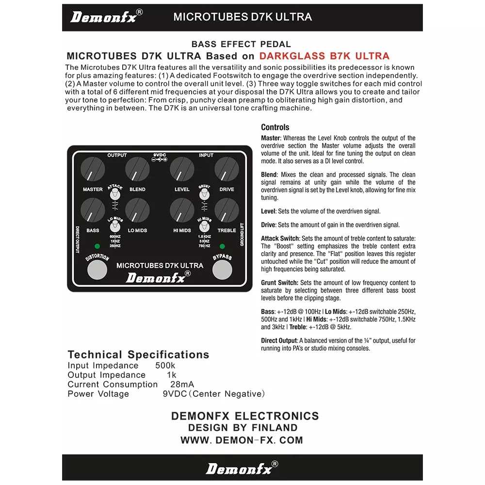 DemonFX New Product Microtubes D7K Ultra V2 Bass Preamp Pedal