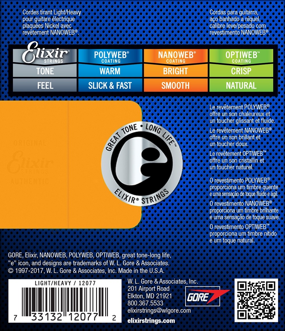 Nanoweb coating permits electric guitar strings with the feel, bright tone, and punch of traditional strings. Elixirs are the first major innovation in guitar strings in over forty years, and they deliver what they promise: great tone and long life no matter what you put them on or how often you play.
