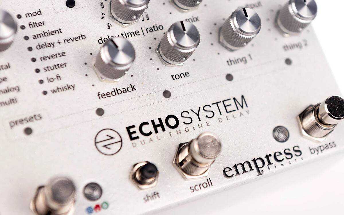 Spanning the gambit of known delay possibilities and beyond, the Echosystem could be the ultimate delay-crafting tool. Faithful emulations of classics like digital, tape and analog delays are numerous, as well as Empress' own take on each of these delay styles. Moving beyond the traditional, the vast amount of sonic ground the Echosystem can cover becomes apparent. Check out the ambient modes when you're feeling chilled out, or perhaps a visit to the multi tap modes for a taste of inspiration.