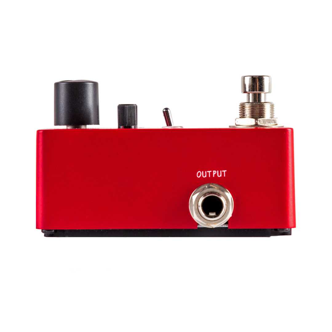 Users can choose to use the FC06 in two different modes that help in choosing the right amount of distortion depending on use case. Using the FC06 in High Peak mode provides boosted bottom end and the ability to boost the high-mid range tones by increasing the amount of drive with the corresponding drive knob. In Low Peak mode, players can add a bit of boost or color to their clean tone without washing away their tone in too much distortion. The FC06 includes a true-bypass switch and its small form factor fits nicely in any pedal setup.