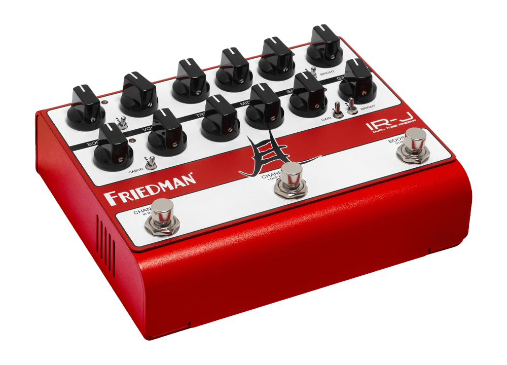 The Friedman IR-J dual-channel tube preamp is an entire Friedman rig in a compact pedalboard-friendly package. IR-J boasts two fully independent foot-switchable channels based on Friedman’s legendary JEL-100 and JEL-20 designs which are rooted in Dave’s modded ‘800/PLEXI circuits. Powered by two high-voltage 12AX7 preamp tubes, each channel delivers deep harmonic richness and the touch response of a large format Friedman tube amp. The SYNERGY powered, state of the art, ultra-low latency, DSP IR cabinet/power amp simulation sends a studio-quality mic’d-up tone to your DAW or Front-of-House. The IR-J provides easy-to-use controls without complex menus and 100-page manuals.