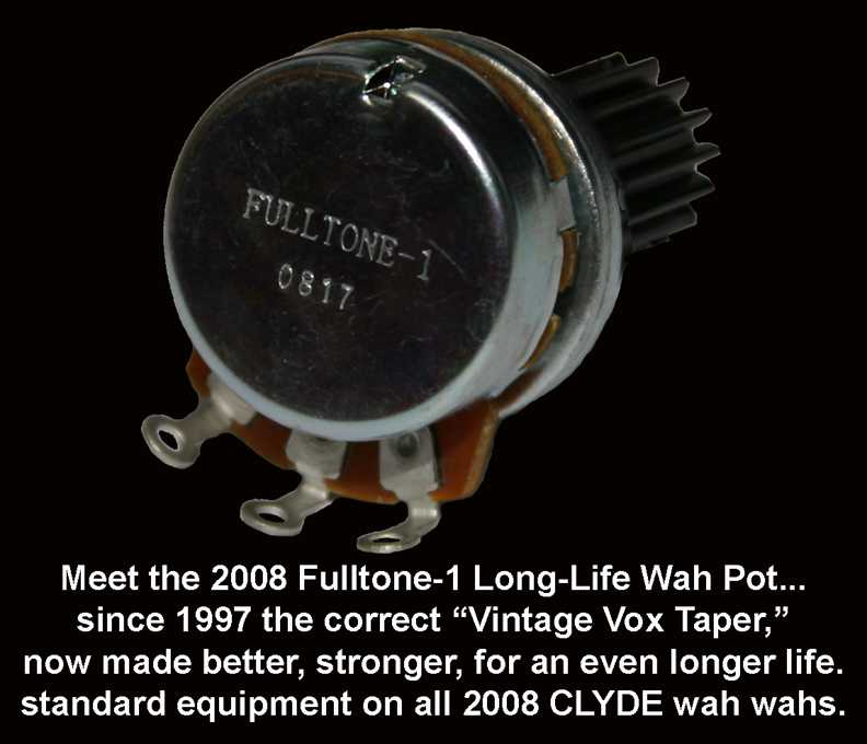 All CLYDE Deluxes sport the most authentic '60's Vox type inductor available, which happens also the quietest... our hand-wound MU-80 (80% nickel alloy) shielded Fulltone 500mH inductor and the long-life Fulltone-1 wah pot.