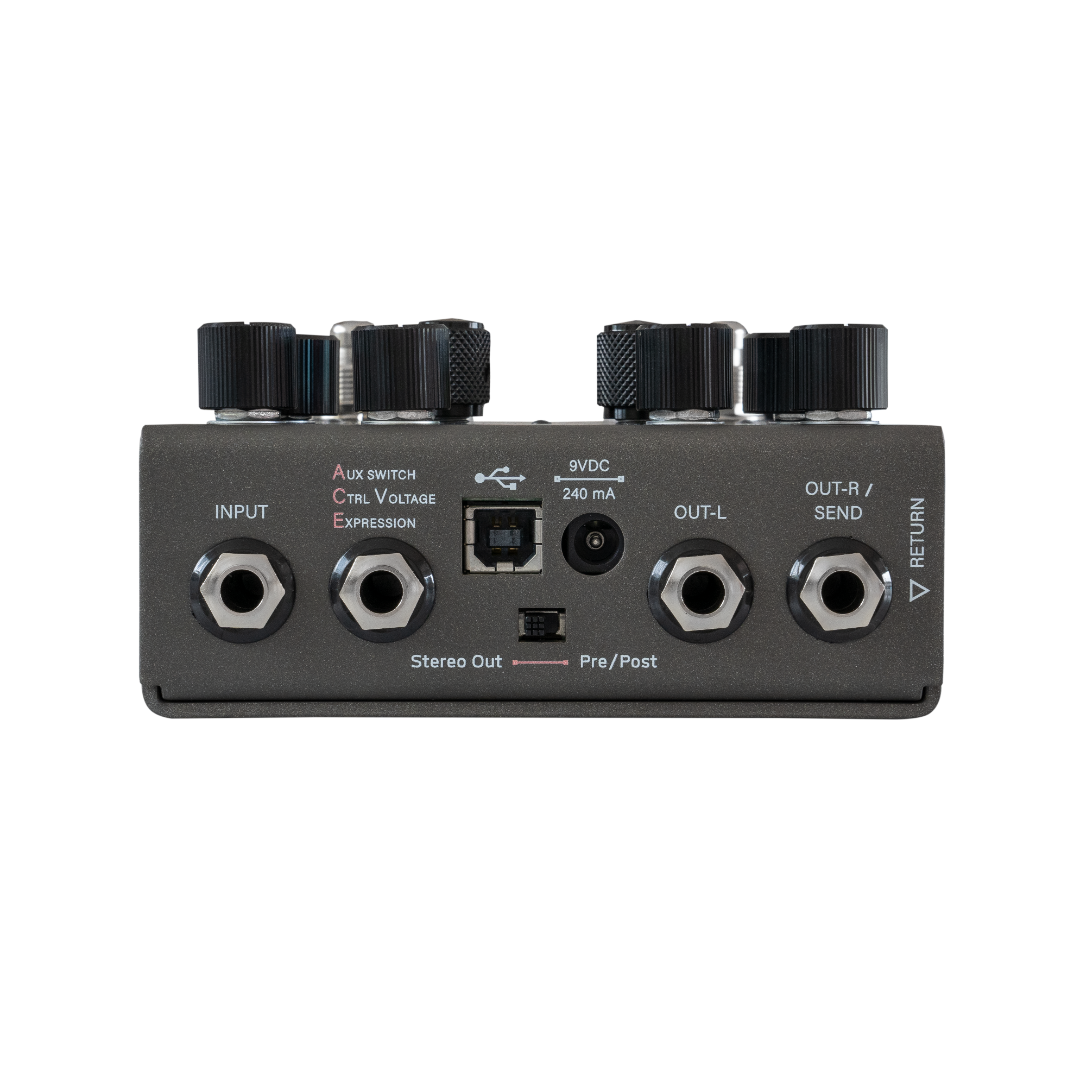 With extensive dual-engine power comes new features and controls that elevate the modulation experience of the Synesthesia for maximum adaptability. A simple control surface creates an intuitive sense for adjustment and each knob also serves as a switch when pressed for advanced functions. For example, the order of the DSP engines can be flipped simply by holding the X and Y knobs down. Synesthesia ships with a current collection of 22 factory presets, with more user-requested presets to be added in later firmware updates (user performed via USB port). A full range of expressive creativity over these many sounds has been carefully looked after. Synesthesia's parameters can be warped and user-defined expression inputs, as well as CV Sources, can be used to develop responsive and integrated uses with other devices. Synesthesia offers multiple stereo configurations along with DSP routing configurations for cascading, mixed and split DSP outputs. Tap-tempo with divisions is a notable given.