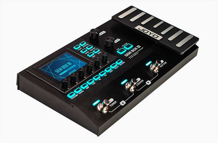 With 9 buttons and adjustable signal chain setting, you can adjust each built-in effect with ease, you can arrange each effect inside the box and save custom boards and tones. In addition to the functions you would expect from a guitar multi effect pedal the JOYO GEM BOX III features a guitar Looper, Drum machine, USB audio recording, Aux in and headphone out.