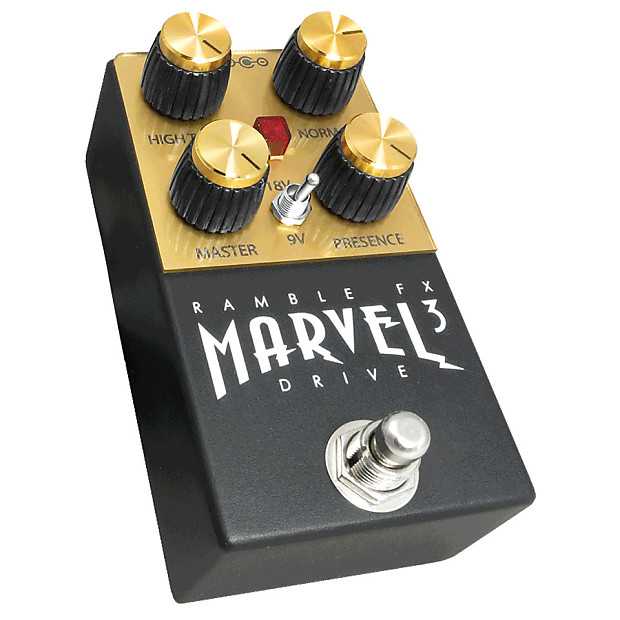 Marvel Drive has an innovative dual voltage switch. No need for an 18V supply, it can turn any voltage connected (9-20V) into 9V and 18V switchable on the fly. Set to 18V, Marvel Drive will be louder and have a sharper attack.