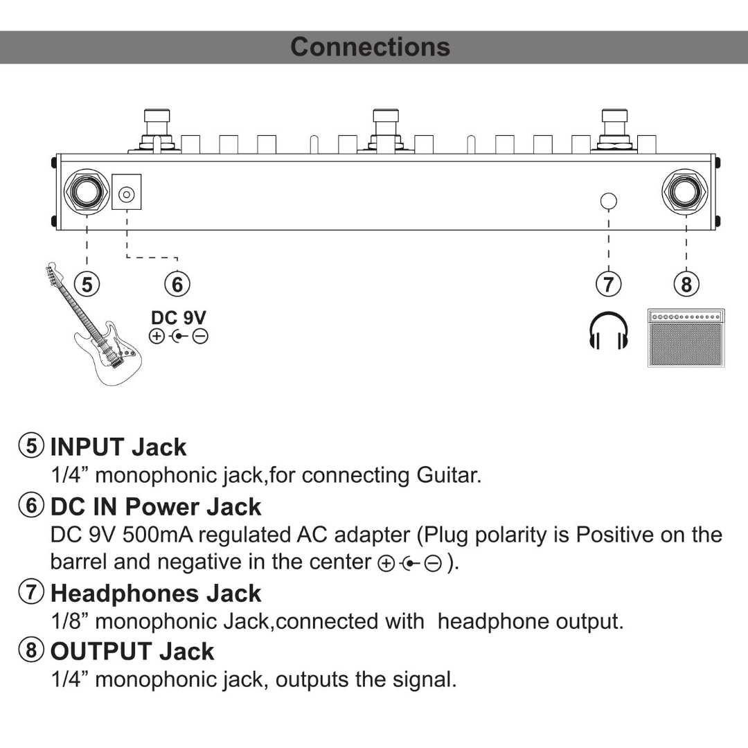 Power Supply: DC 9V (plug polarity is positive on the barrel and negative in the center)