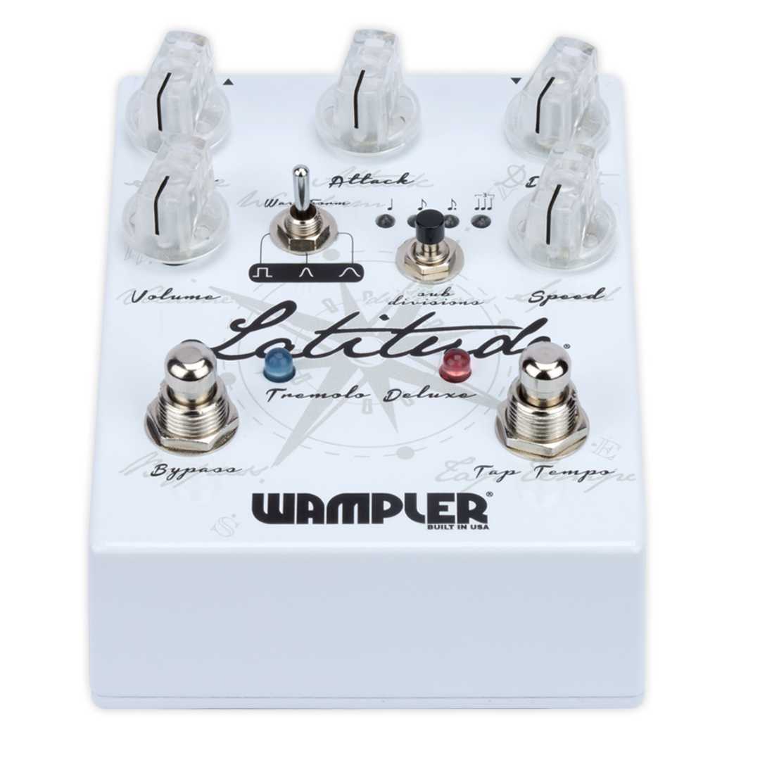 From the sweet shimmering tremolo of yesteryear to helicopter choppiness of today, the tremolo has been a staple for guitar effects. With one foot in sweet vintage tones and one foot in more modern helicopter chops, the Wampler Latitude Deluxe offers the best of both worlds.
