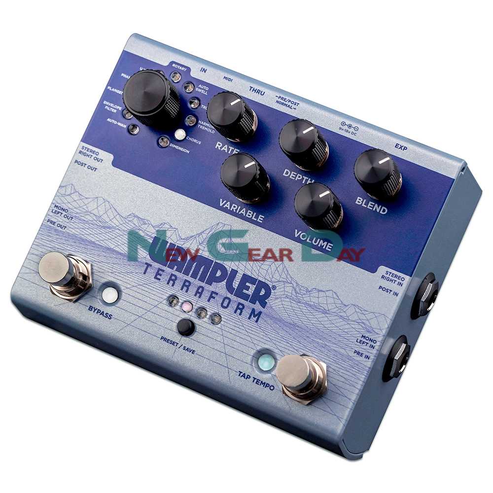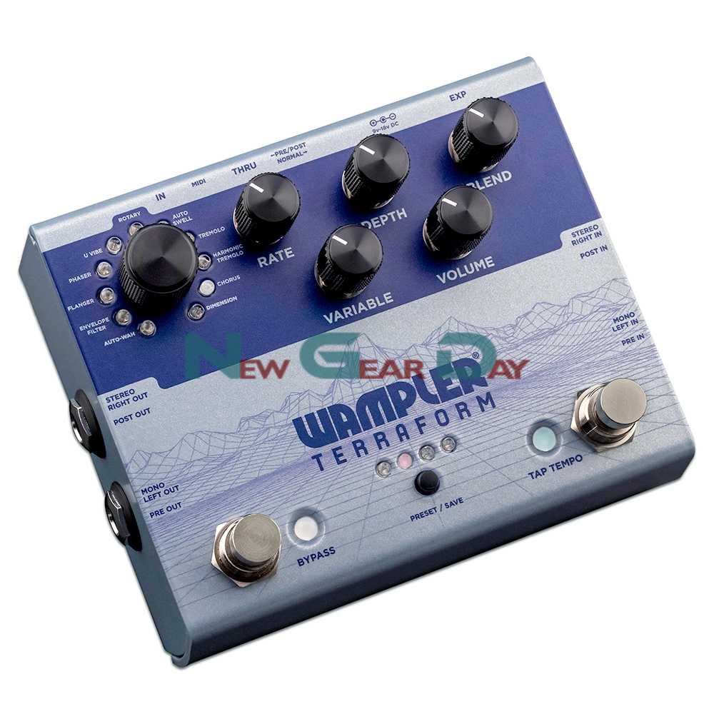 As soon as you turn the Terraform on you will experience 11 custom designed and built effects with the width, depth, and elegant organic beauty you usually only find in standalone analog pedals… from the highest quality lush analog-sounding Chorus, the pulse of the vintage U Vibe, the swirl of the large Rotary cabinet, to the almost airplane swoop of the Flanger… You will find that all eleven effects are filled with the tonal quality that is synonymous with the Wampler name.
