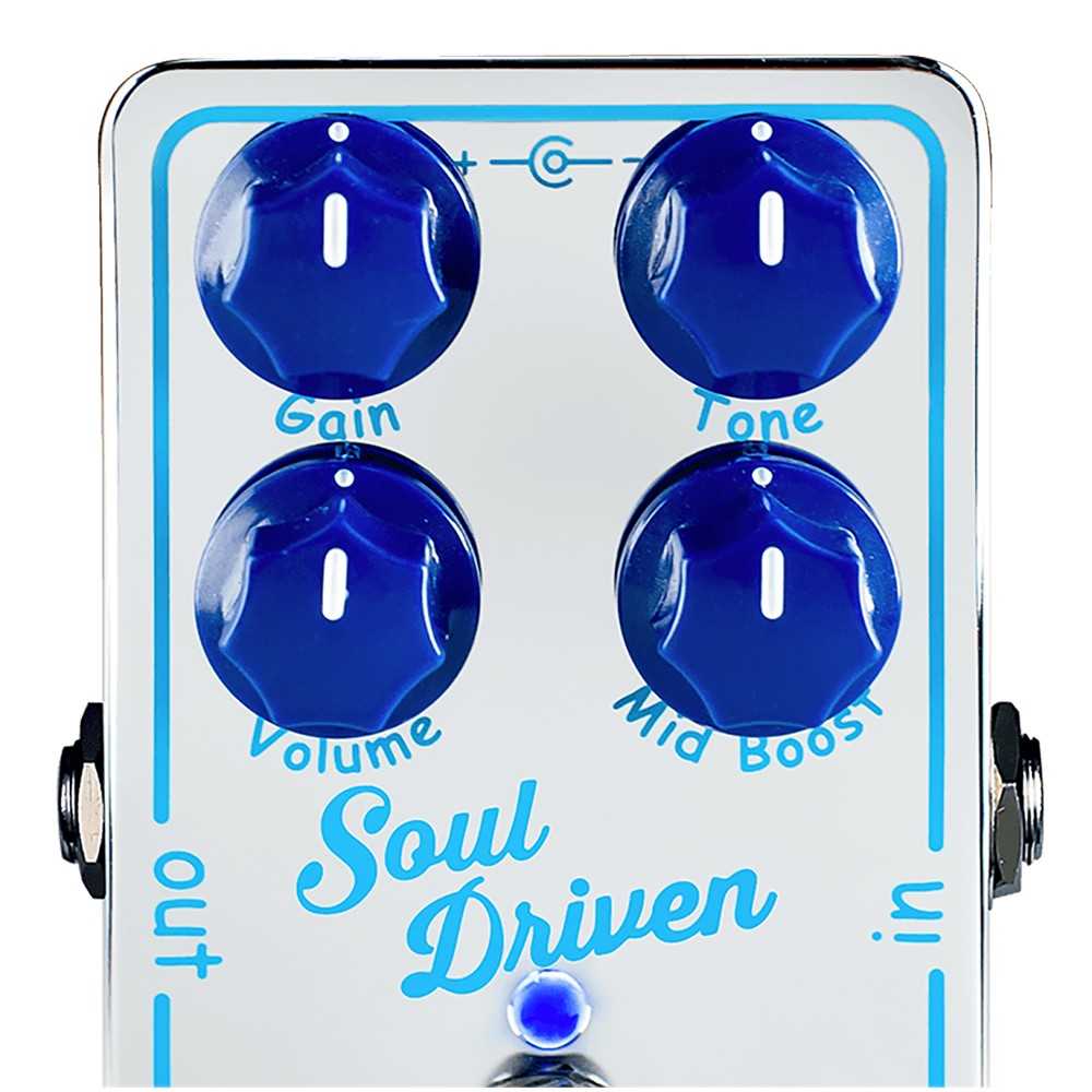 The “Mid boost” knob pushes the mid-range frequencies creating rich dynamics and the “Tone” knob (not just your ordinary tonecircuit) can be set from a super tight bottom end to “in your face" highs. Soul Driven will help you dial in the “sweet spot” every time.